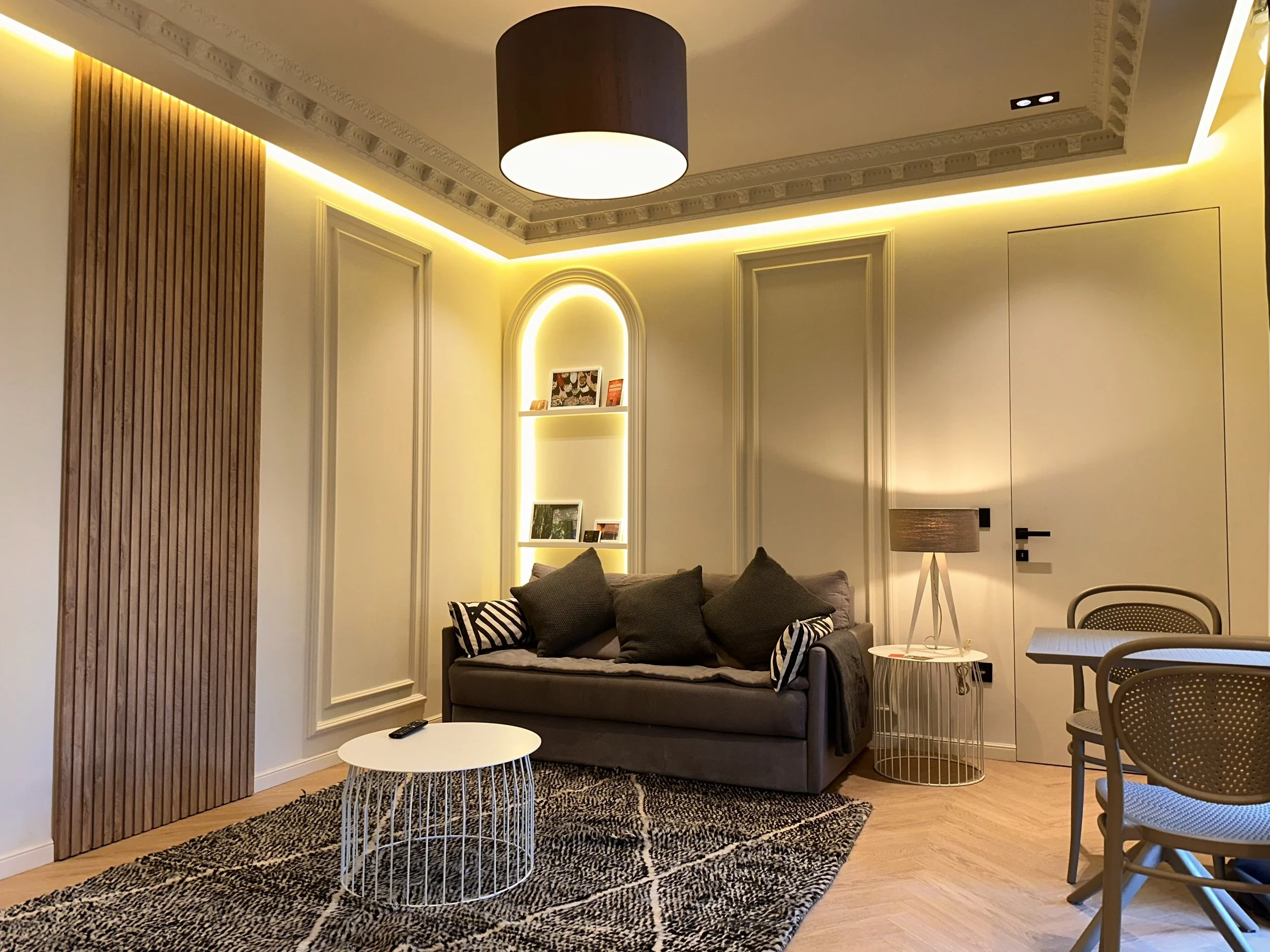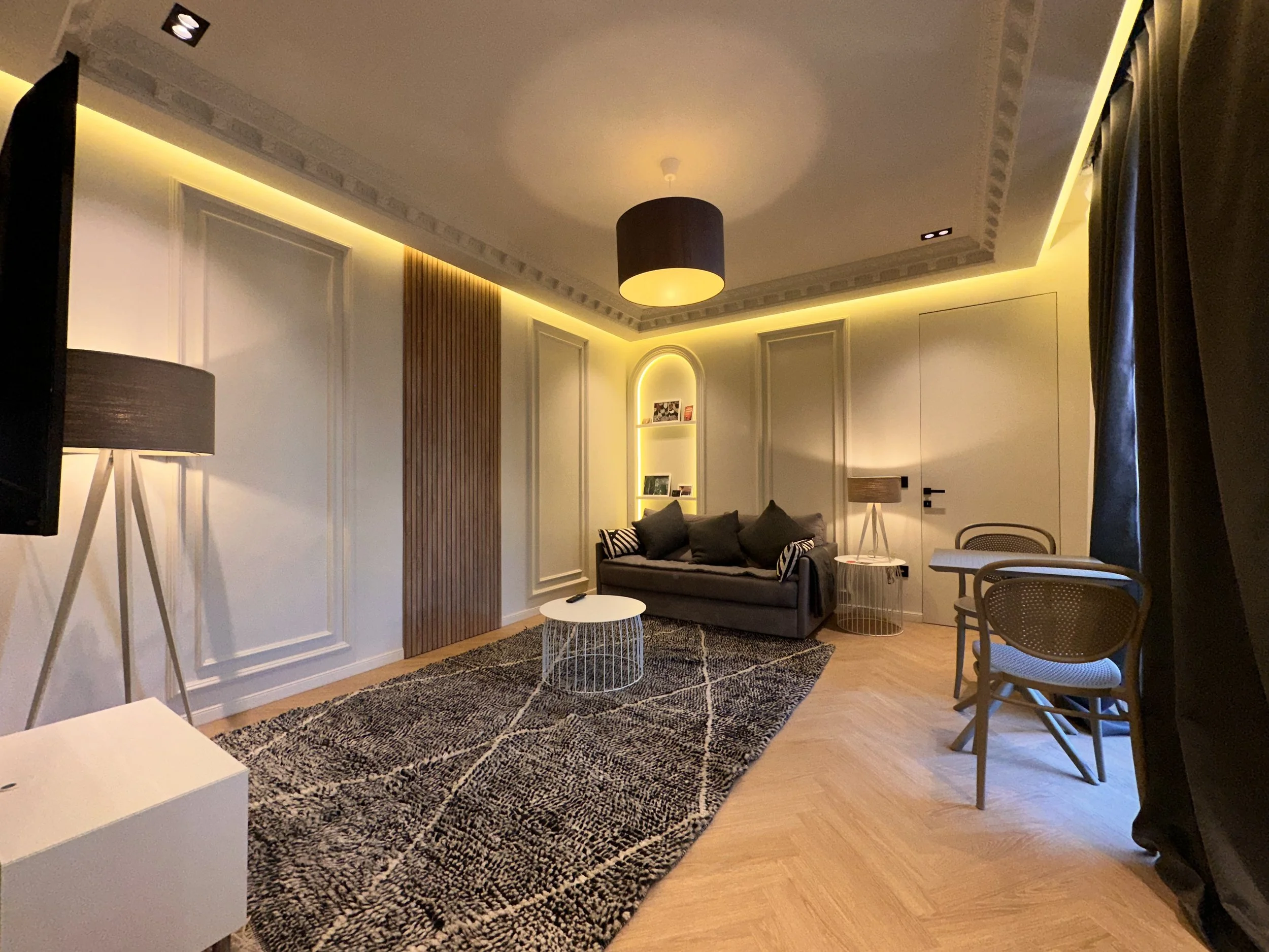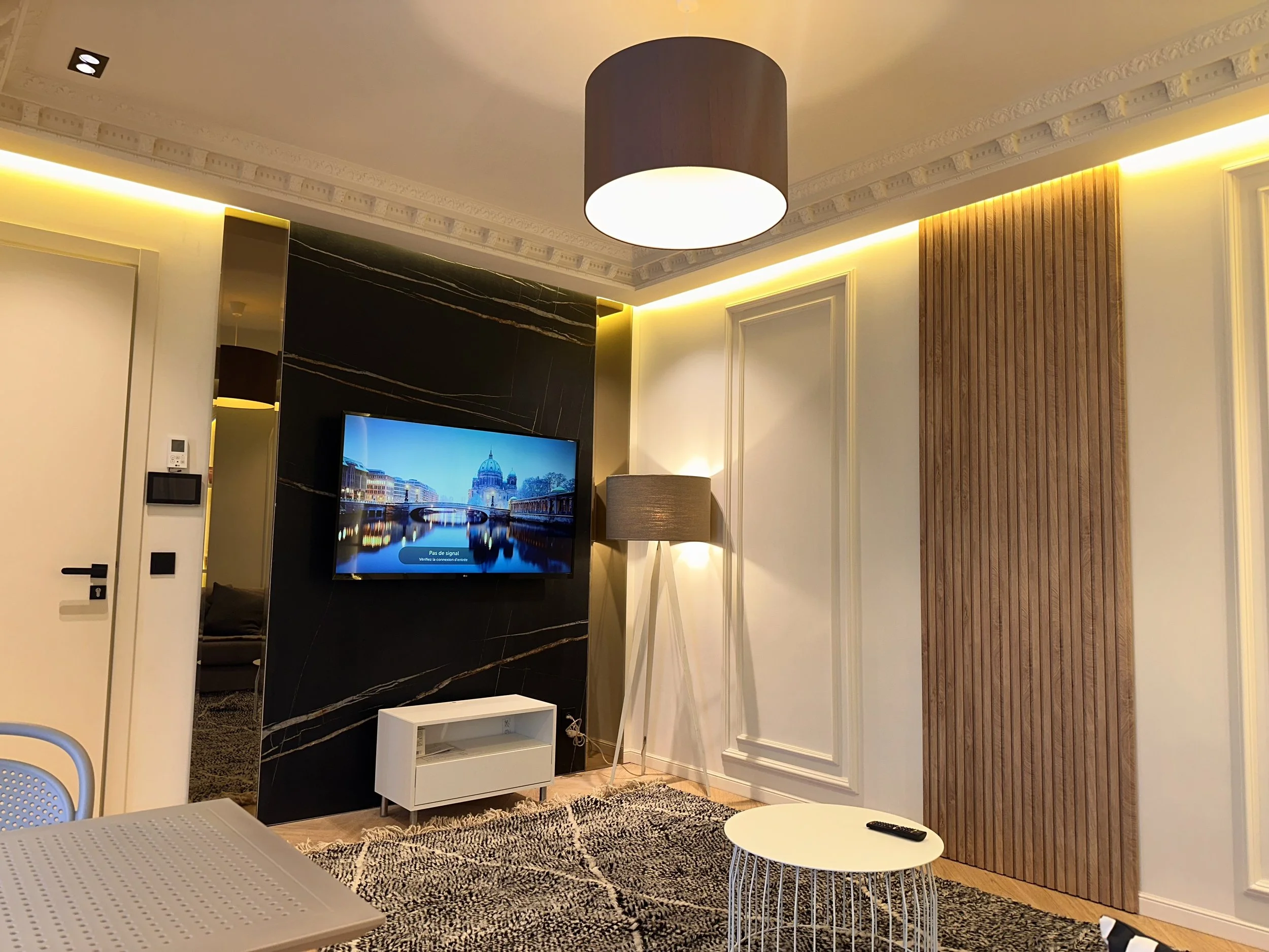 Cet appartement luxueux de 47 m² est entièrement équipé des dernières technologies — domotique, fibre optique et autres équipements modernes.