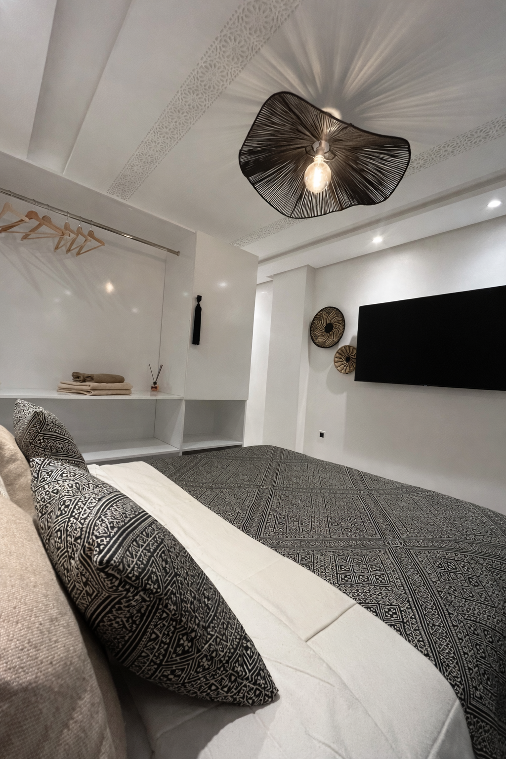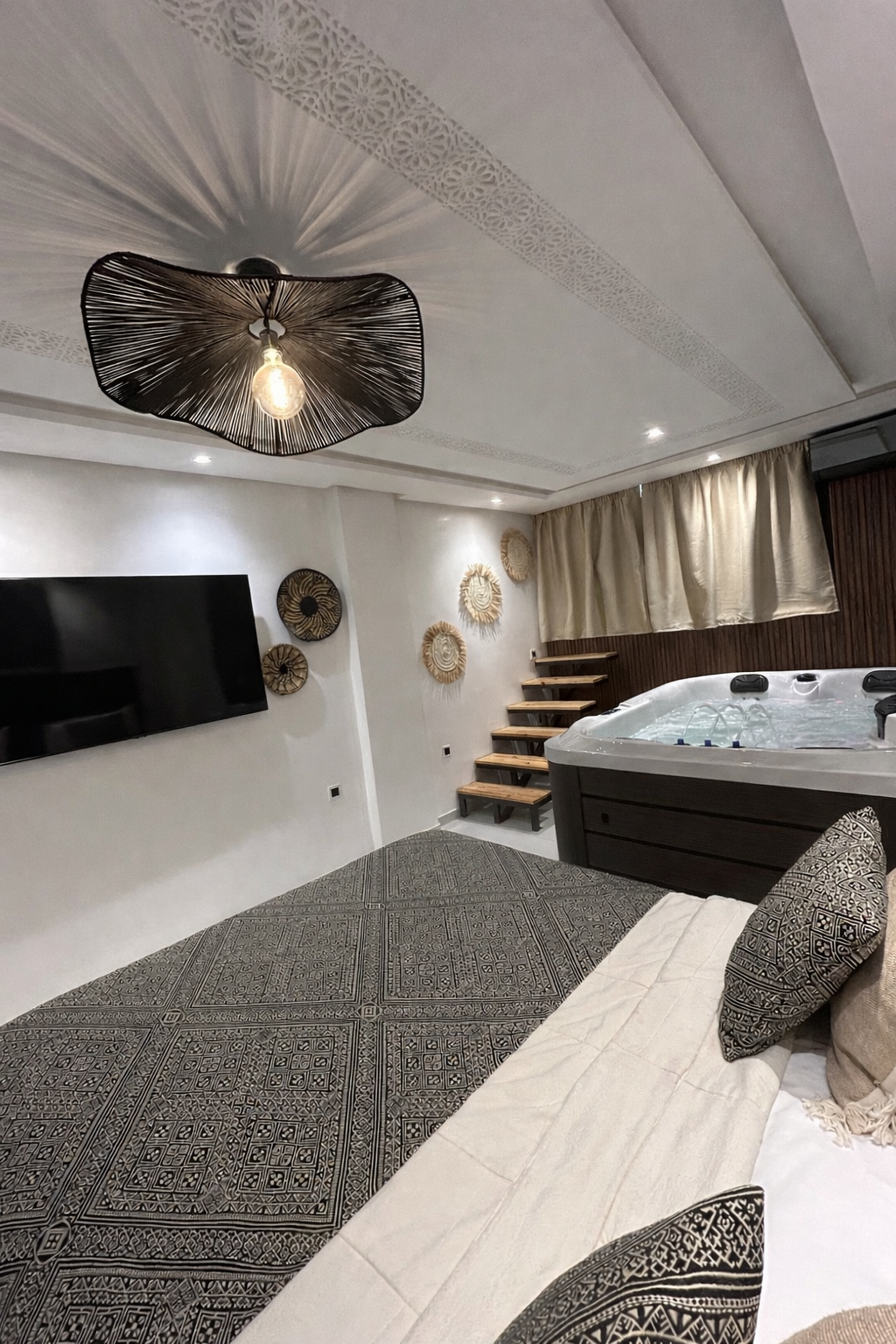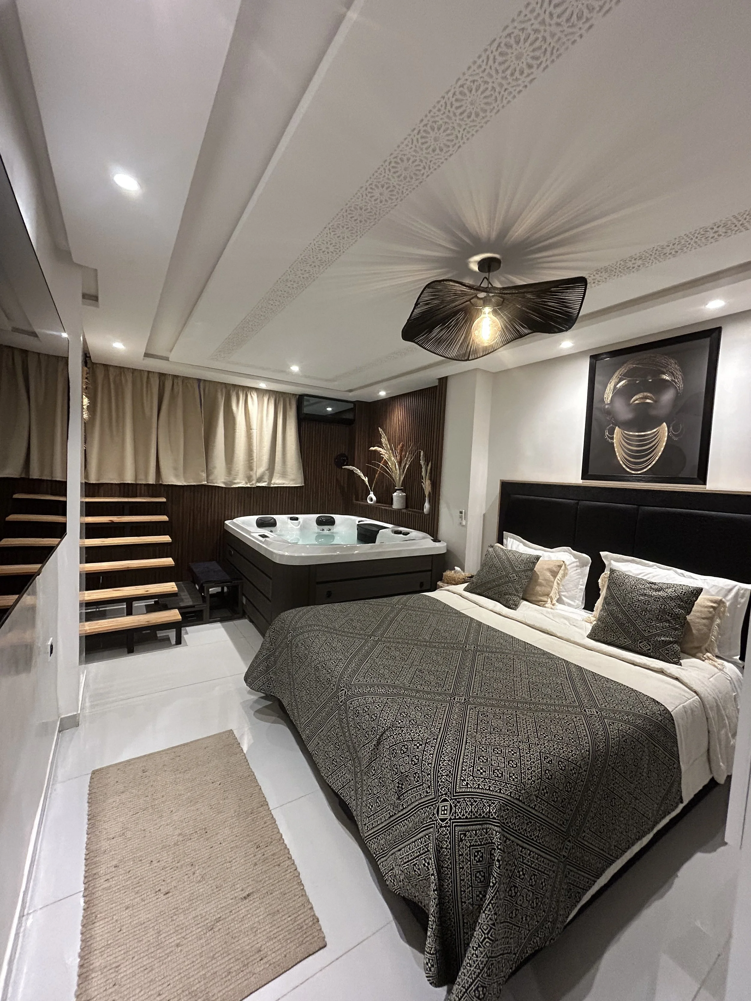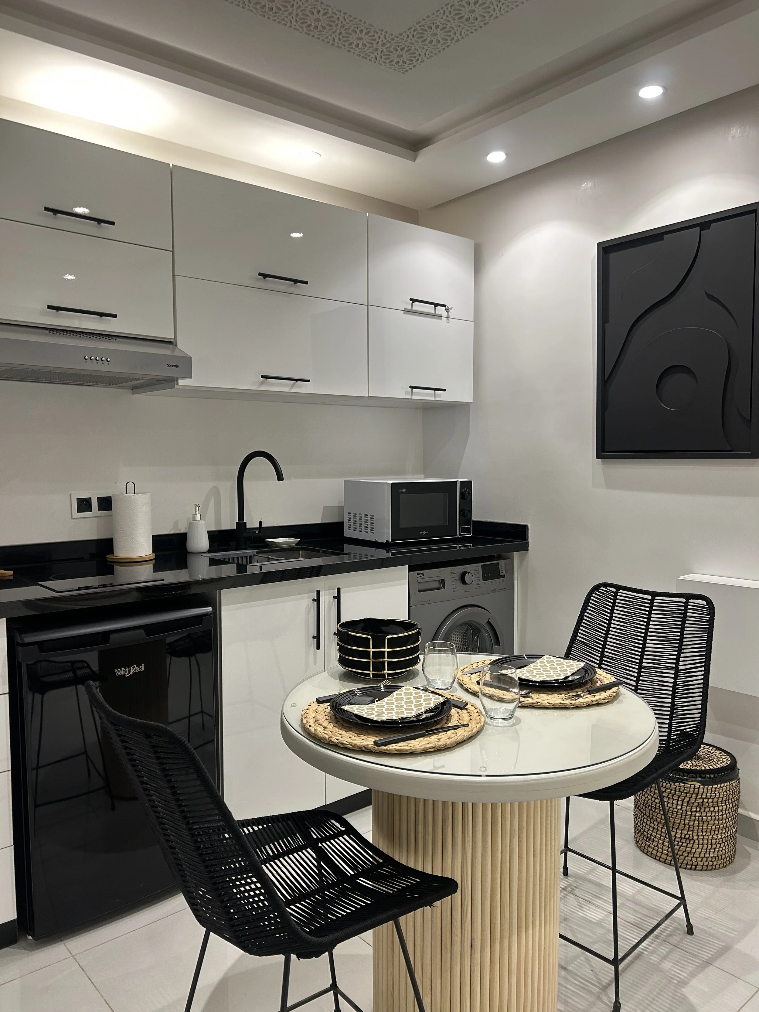 Charmant studio urbain en plein cœur du centre-ville de Guéliz, à 150 m du centre commercial Carré Eden. Surface 33 m². Terrasse privée en jouissance (accessible uniquement depuis le studio, ne figure pas dans le titre). Situé entre le rez-de-chaussée et le premier étage de l’immeuble, dans un environnement très calme. Immeuble ancien, vendu clé en main avec tout le contenu neuf : mobilier, équipements et même un jacuzzi. Aucun travaux à prévoir, tout a été entièrement refait.